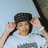 Černý unisex oboustranný klobouček s vyšitým logem Blakkwood z jedné strany a s potištěnými logy z druhé strany.
